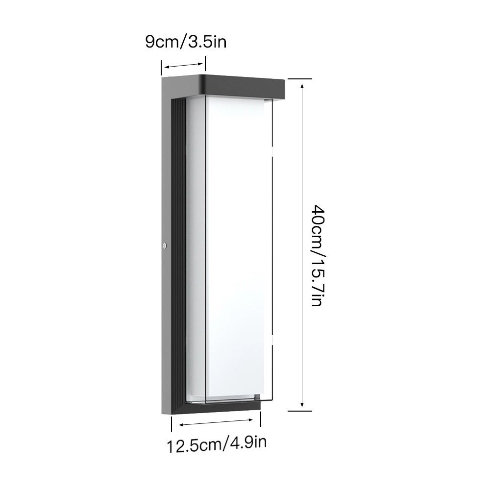 💡LED Porch & Patio Wall Lights Size💡400*125*90mm (15.75*4.92*3.54in), Watts: LED 30w, Input Voltage:110-130V, Temp: 2700-3000K (Warm light) or 6000-6500k(Cold light), Frequency:50HZ, Light source: 90*LED chips with 3000LM illumination, Low power consumption and energy saving. The average lifespan of 50000 hours.