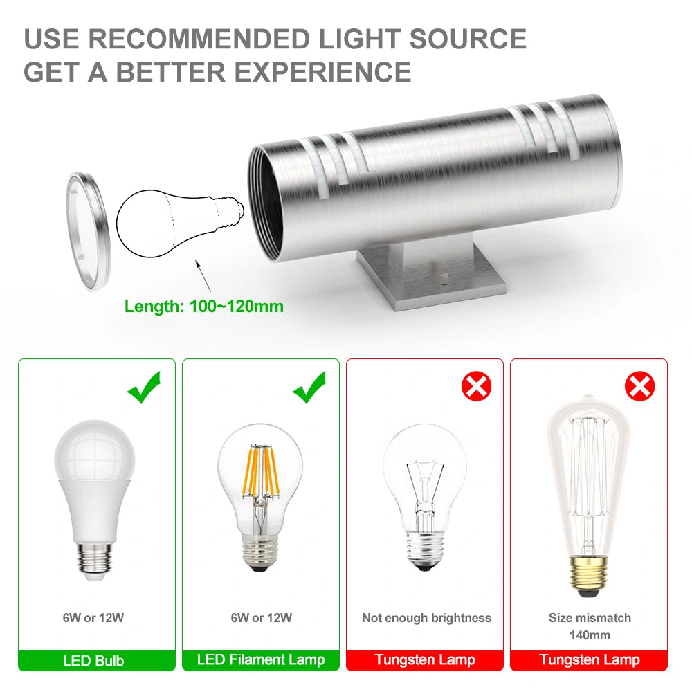 💡304 Stainless Steel Wall Sconce💡304 Stainless Steel cylinder body and 2 tempered glasses caps, Exquisite Workmanship, IP65 waterproof tested, this wall light is perfect for exterior use. No matter if it is rain or snow, strong and Durable.