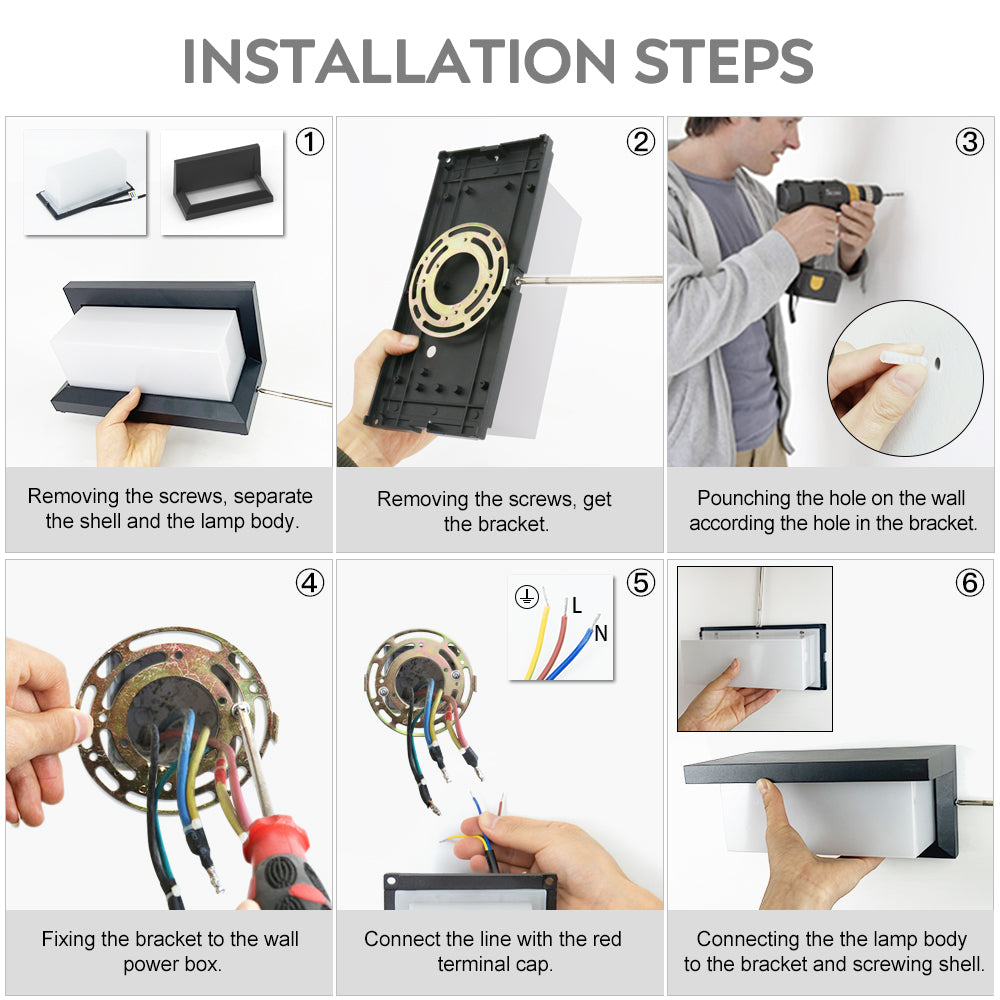 💡US Standard Bracket Installation💡Size: L 10.2" x W 4.9" x H 4.9", Input Voltage :AC85-265V. Wattage: 24W. Light source: 48*LED chips included. Electric Hard-wired with wall lamp bracket, Contains all installed accessories and installation instructions.