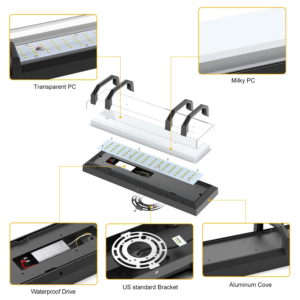 In addition, we also have normal mode, induction mode (light sensor + motion sensor), app d Save imming mode, and USB charging lights. You can pick the right lighting for your hotel, garage, home construction projects.